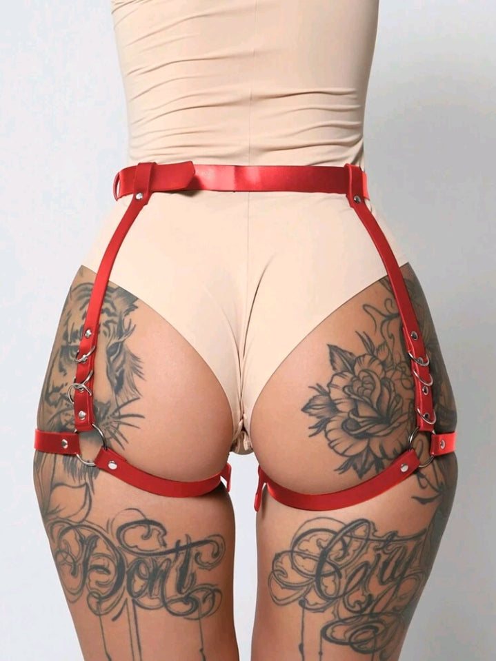 Leather Garter Belt in Red