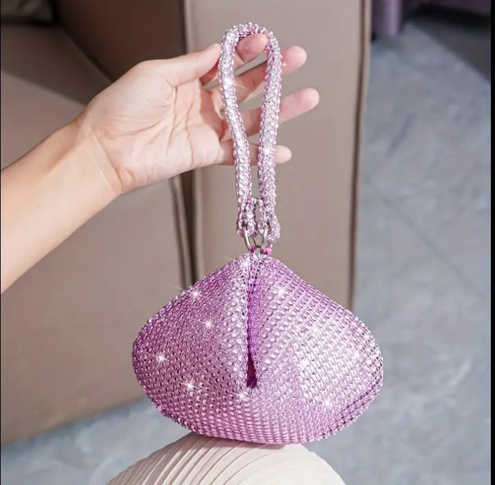 Glitter Rhinestone Decor Evening Bag in Rose Pink