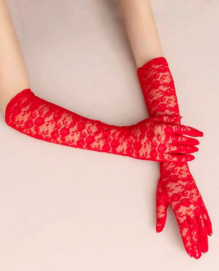 Long Rose Lace Gloves